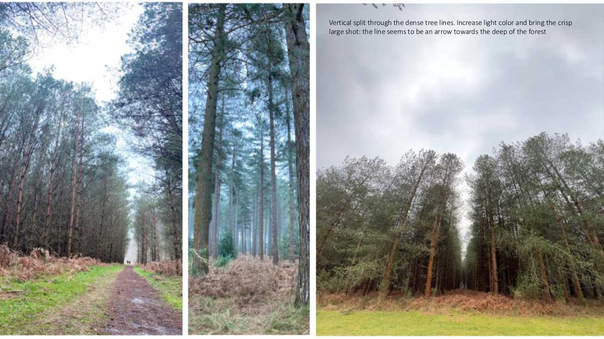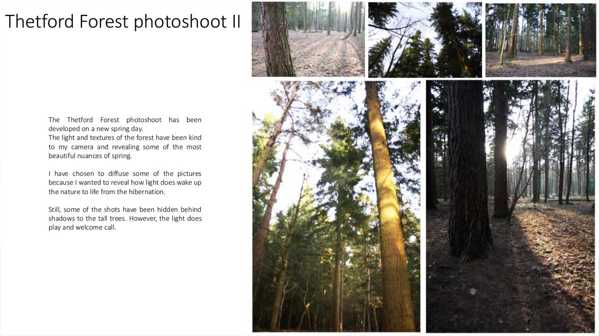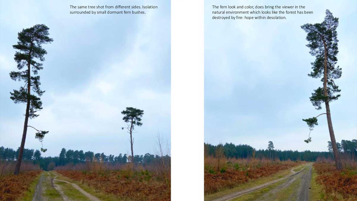 The initial layout of this photoshoot is like a storyboard, to invite the viewer along with the journey of the walk. I will be using these photographs to include in my personal illustrations inspired by Luke Pearson. I will then go on to create small scenarios, with the character I am creating, to then storyboarding and animation.Through these nature and woodland photographs, I can create my own scenes and tweak them to create ethereal and magical illustrations like Pearson style to help me navigate a small story through moving Images.