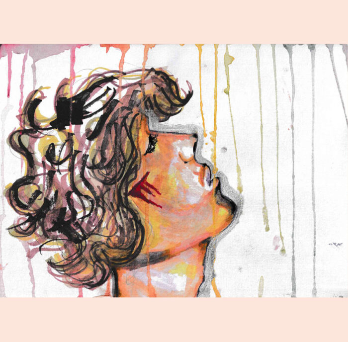 Portrait de couleurs rouge et bleu inacheve