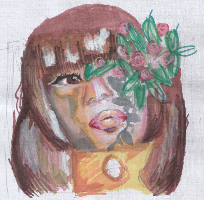 Portrait de couleurs rouge et bleu inacheve
